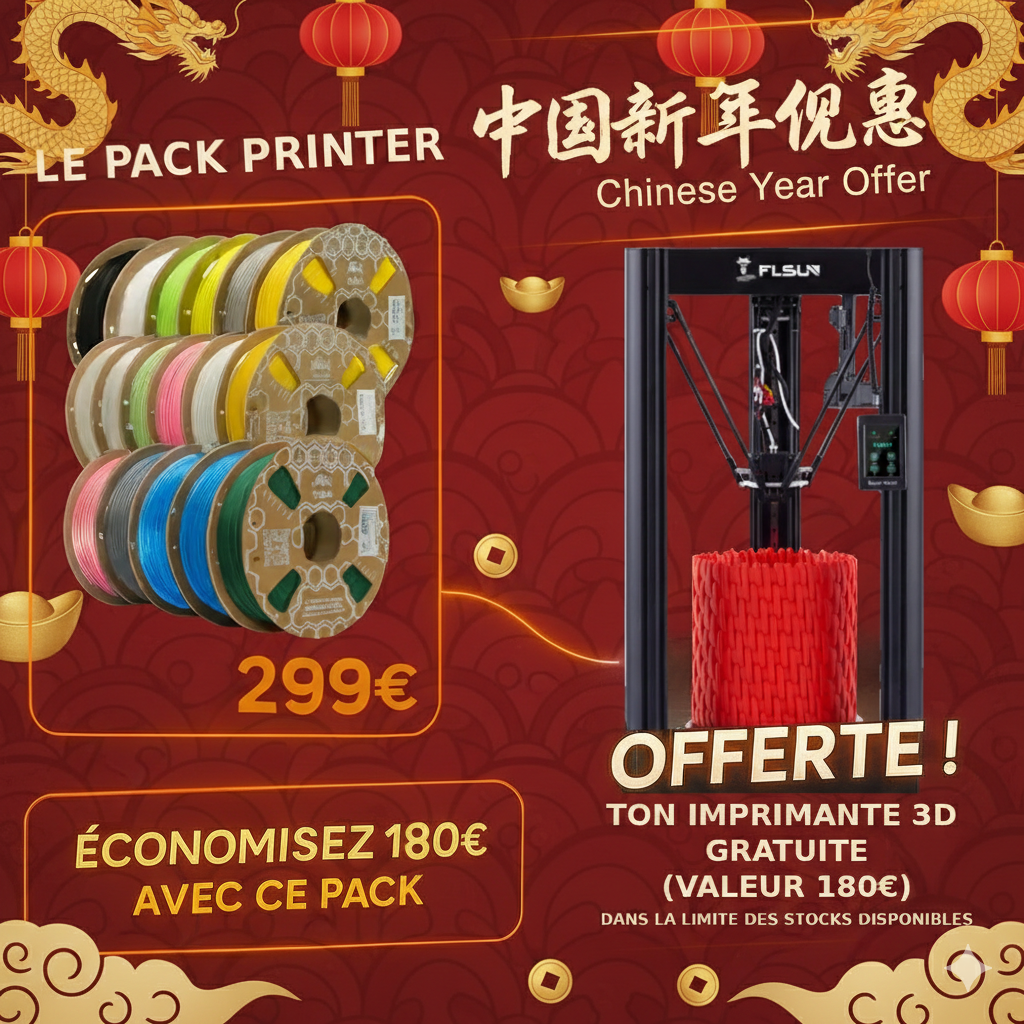 Retrouvez dans ce pack exceptionnel : 17 bobines de 1 kg + une FLSUN Super Racer offerte !